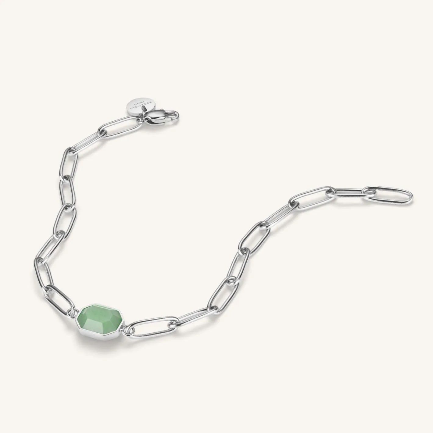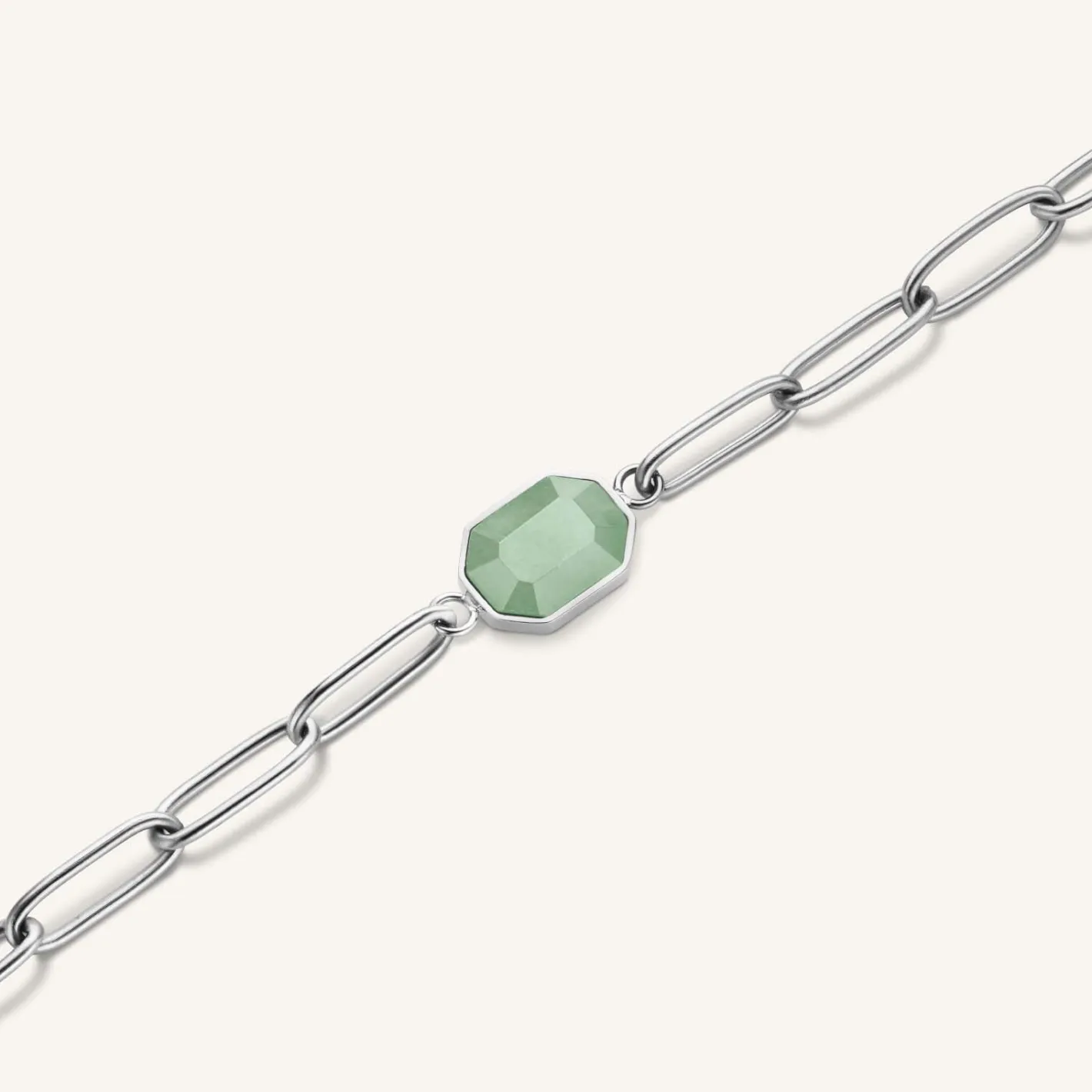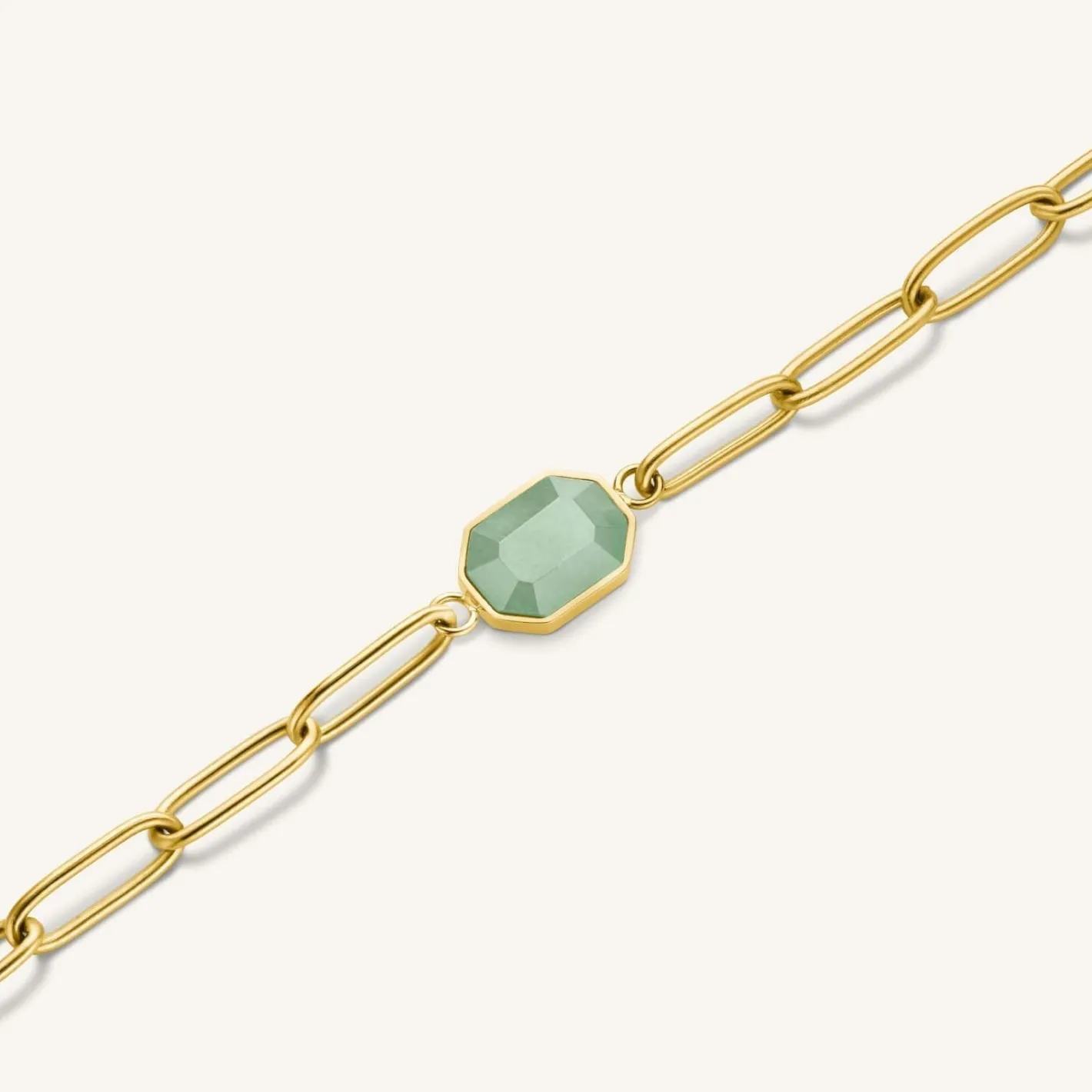 Add color to your daily accessories. This piece is embellished with hand-cut Adventurine gemstone in a beautiful green shade. Aventurine is a style of quarz which symbolises prosperity and confidence.