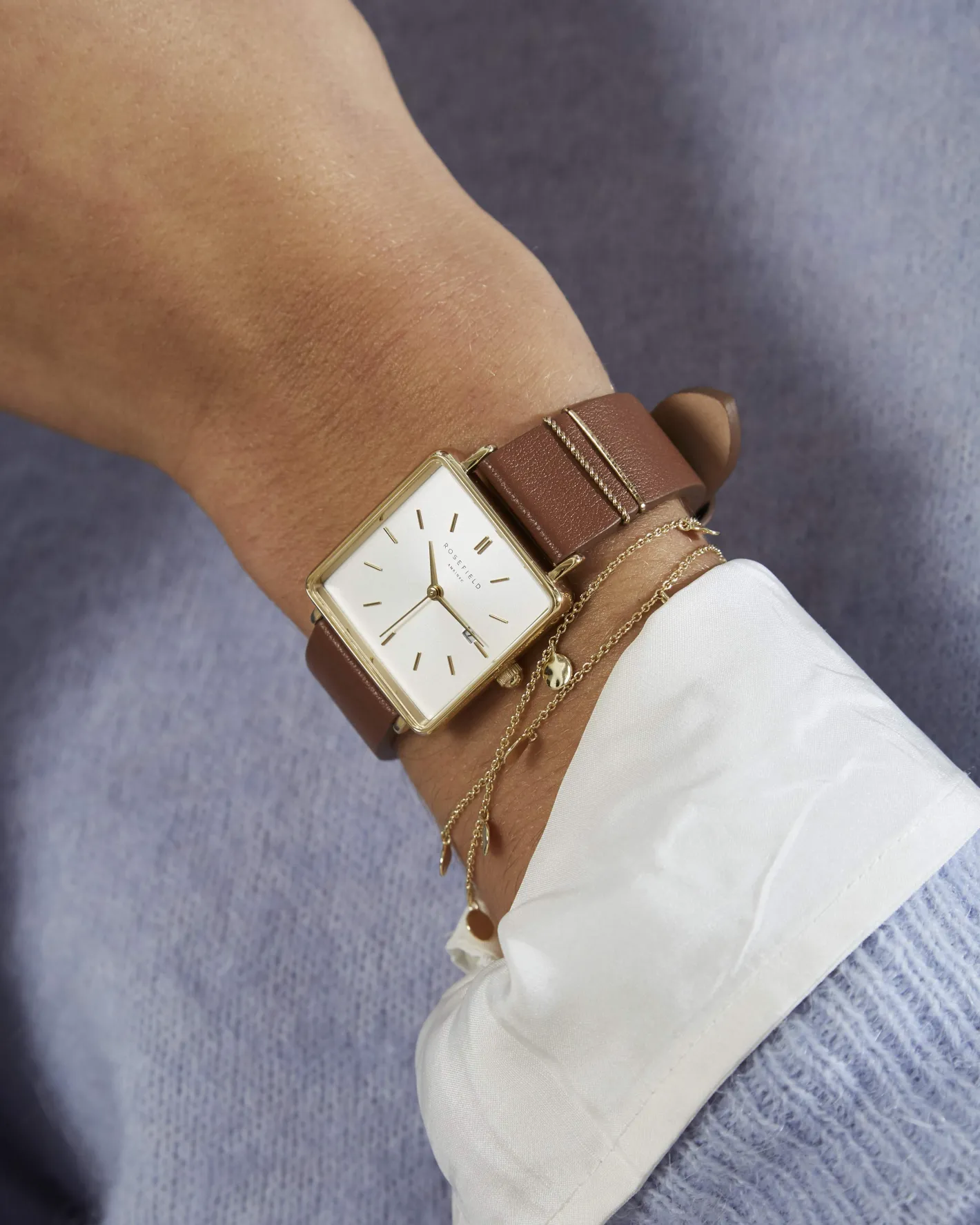 The Boxy is Rosefield’s signature watch collection. The classic square shape and modern strap options embody a “new vintage” trend. Featuring a 26mm dial, it’s one of the smallest Rosefield timepieces for minimalist, easy dressing.