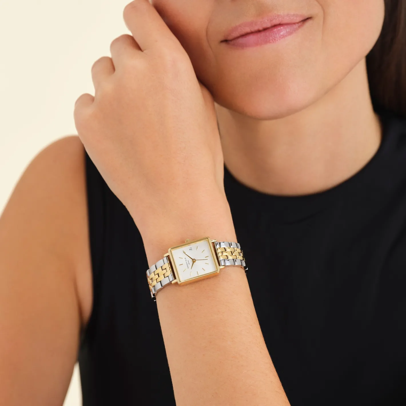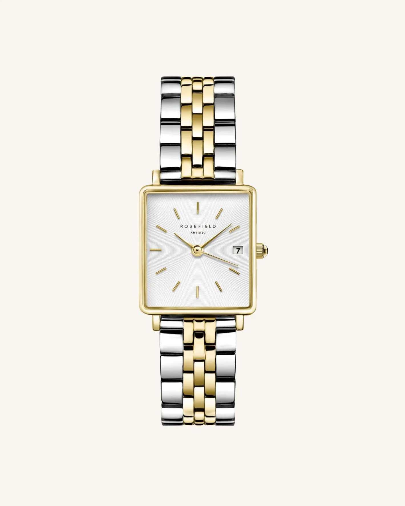 New size, new style: The Boxy XS is part of Rosefield’s signature watch collection. The fan favorite square silhouette is even more delicate at 22mm. The classic details remain: rounded edges, steel and leather strap options, plus a date function. This is seriously retro.