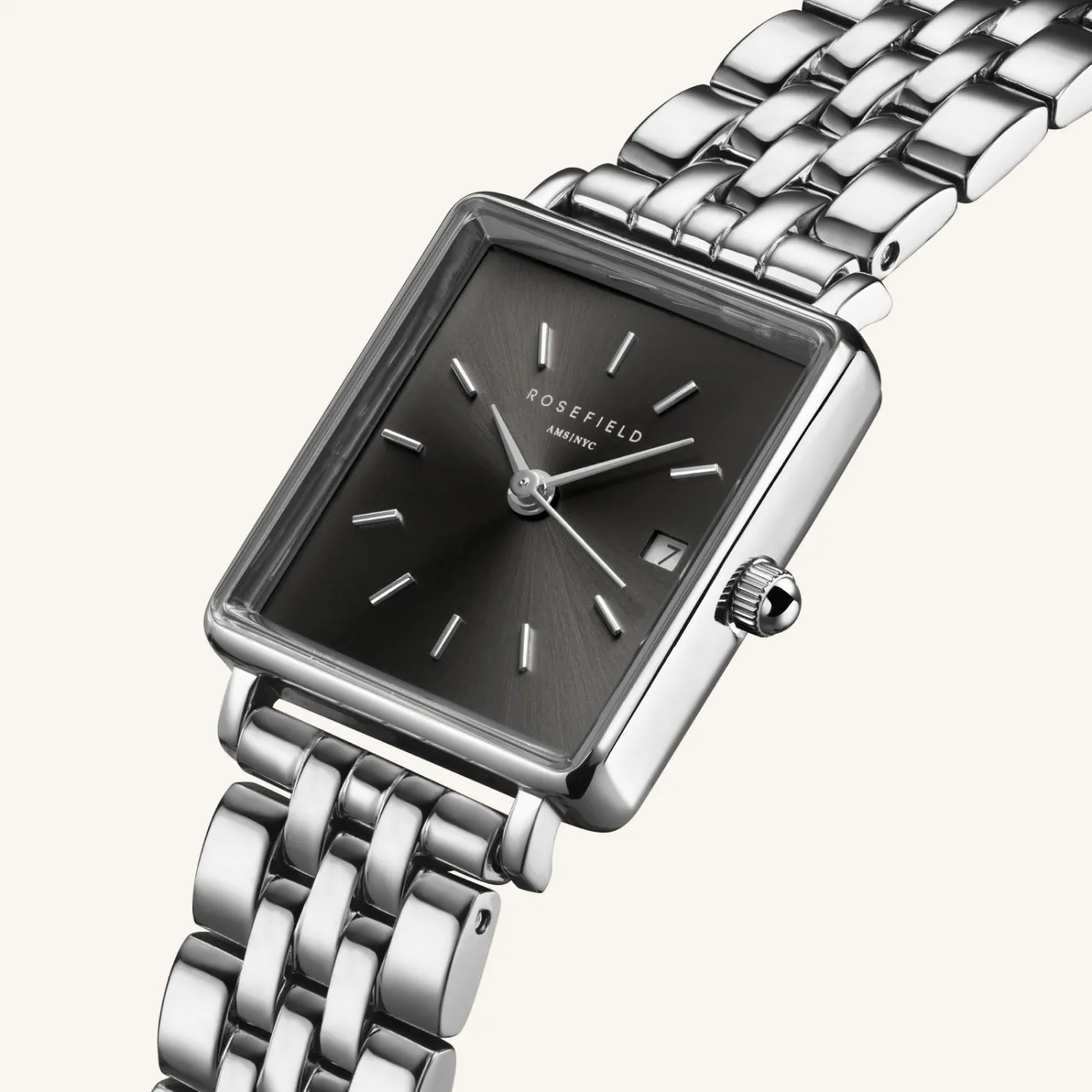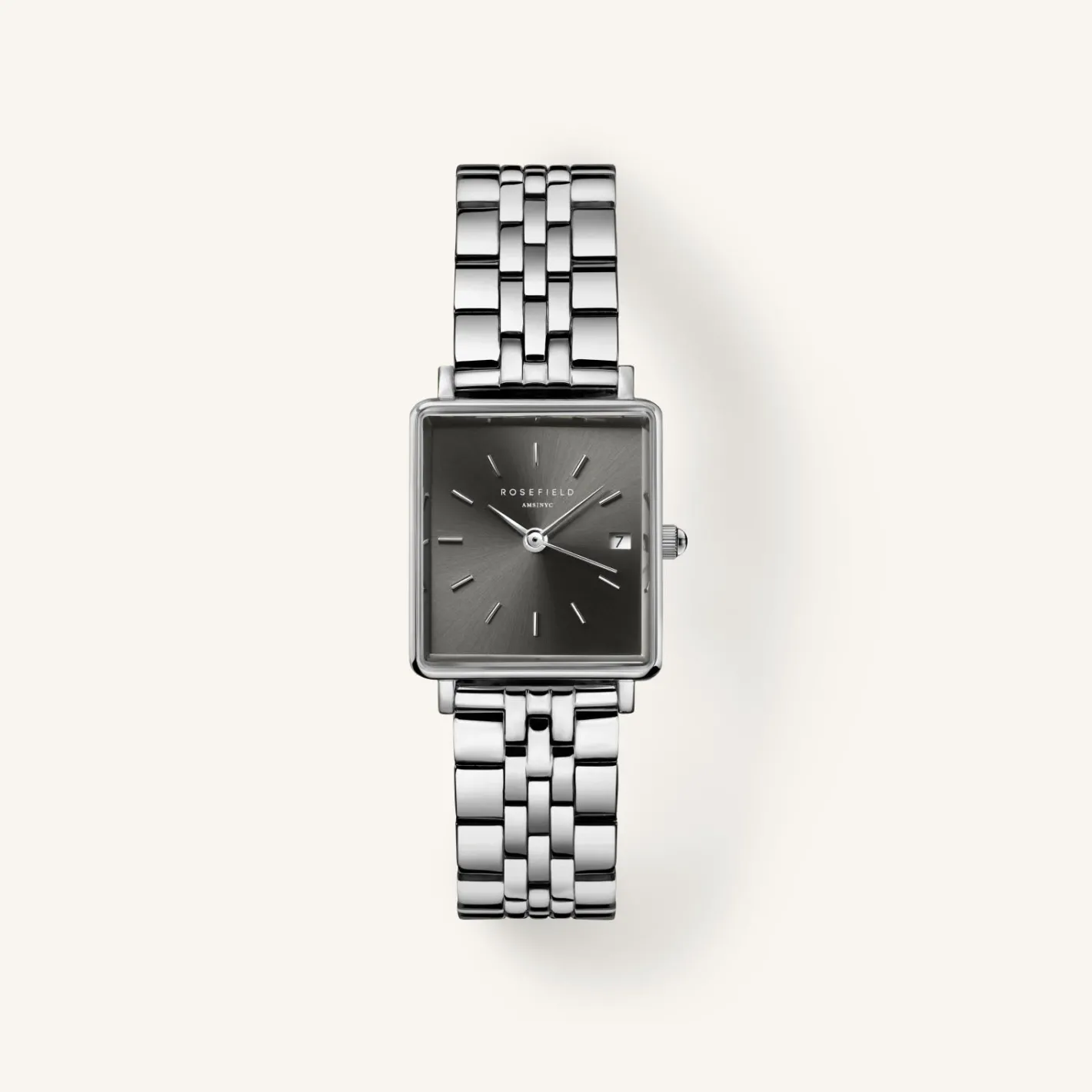 New size, new style: The Boxy XS is part of Rosefield’s signature watch collection. The fan favorite square silhouette is even more delicate at 22mm. The classic details remain: rounded edges, steel and leather strap options, plus a date function. This is seriously retro.