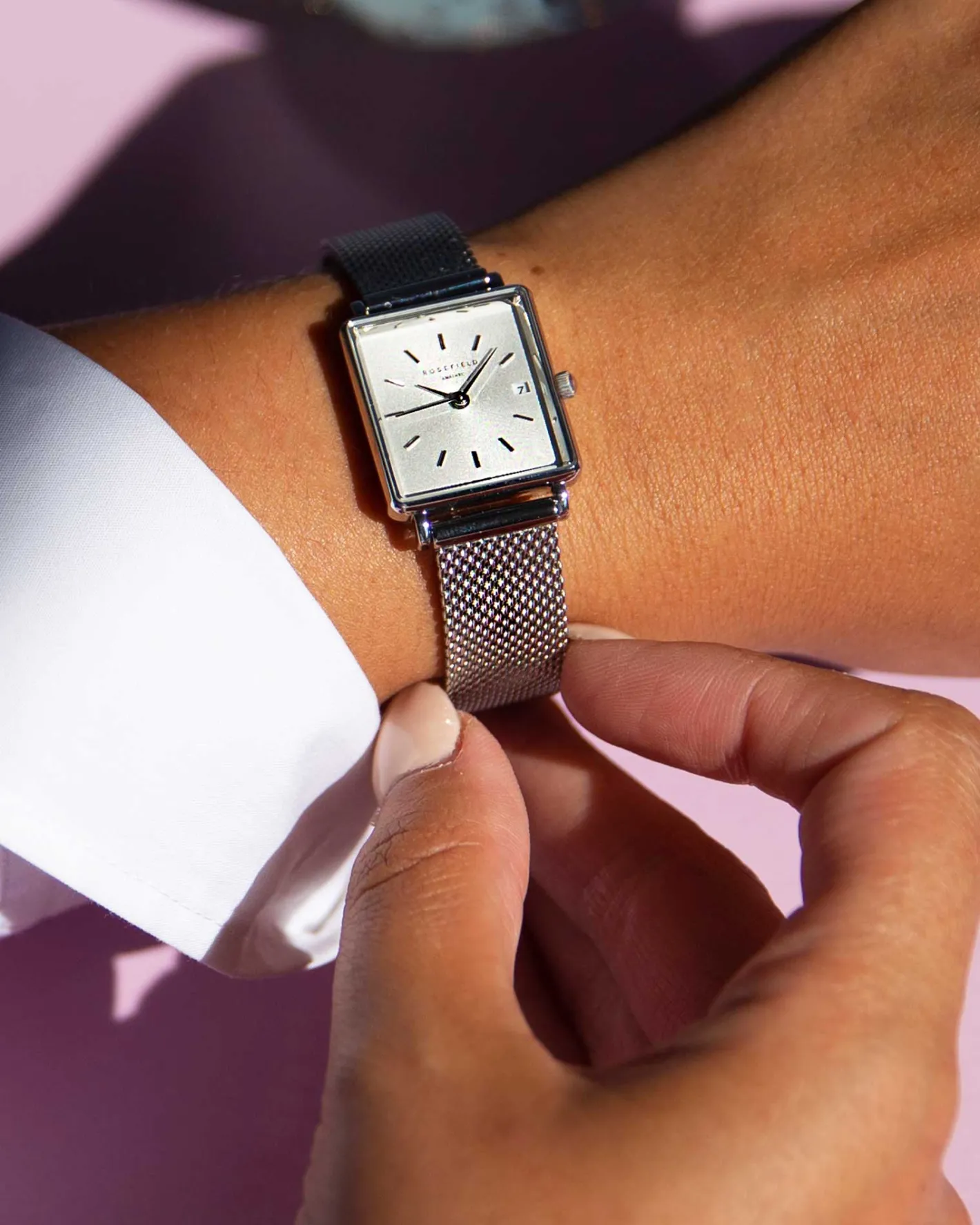 New size, new style: The Boxy XS is part of Rosefield’s signature watch collection. The fan favorite square silhouette is even more delicate at 22mm. The classic details remain: rounded edges, steel and leather strap options, plus a date function. This is seriously retro.