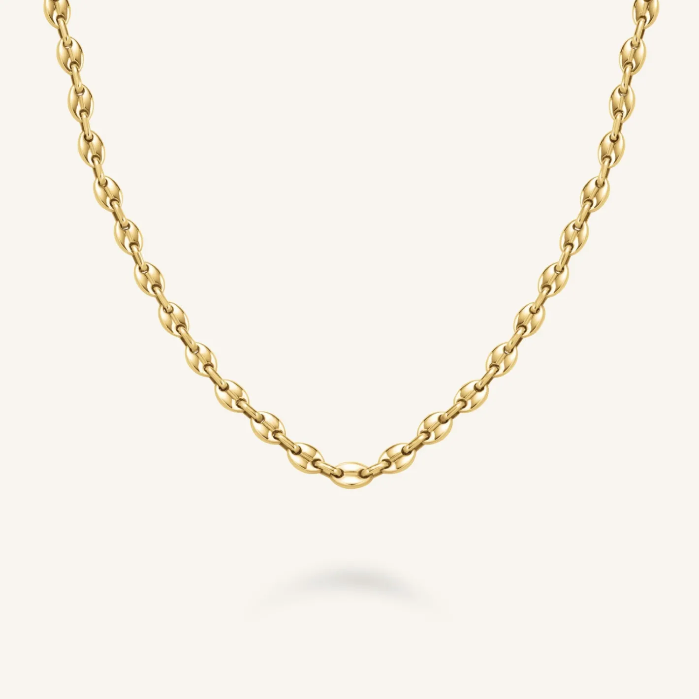 ColorGoldMaterialPlated stainless steelChain typeMini Coffee Bean ChainAdjustable length42-46 cmClosureRectangular lobst…