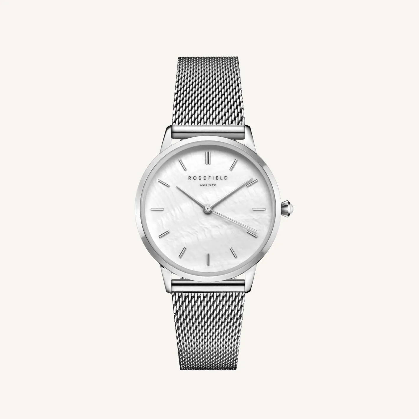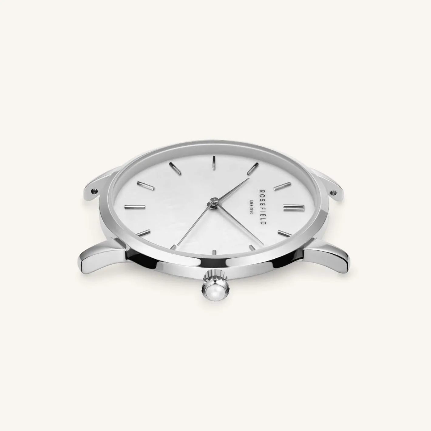Time to circle back with the Pearl Edit — a reinvented classic with a Mother of Pearl Twist. A slightly bigger round watch with a 36mm case and a shiny Mother of Pearl dial and a pearl surprise featuring on the clock’s crown.