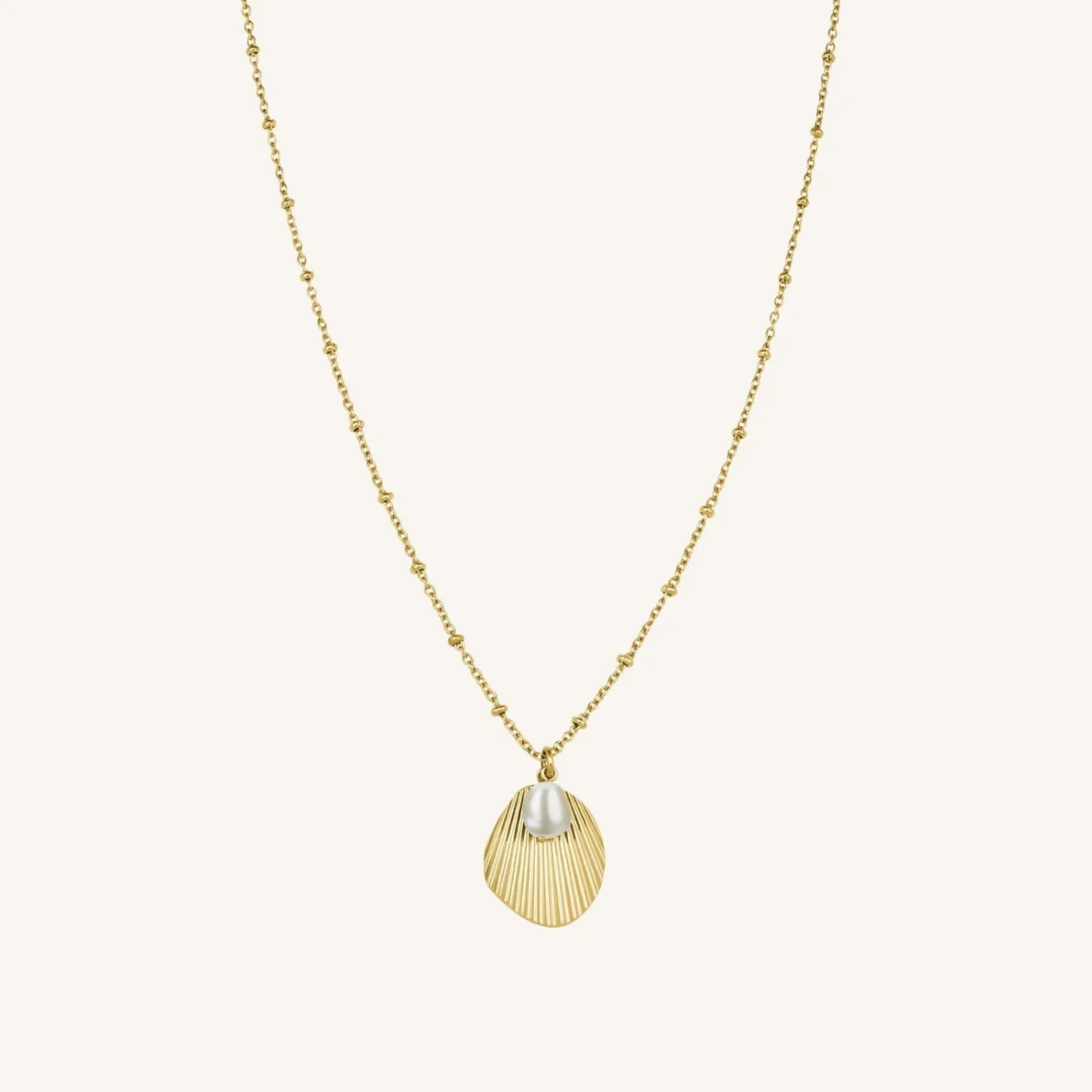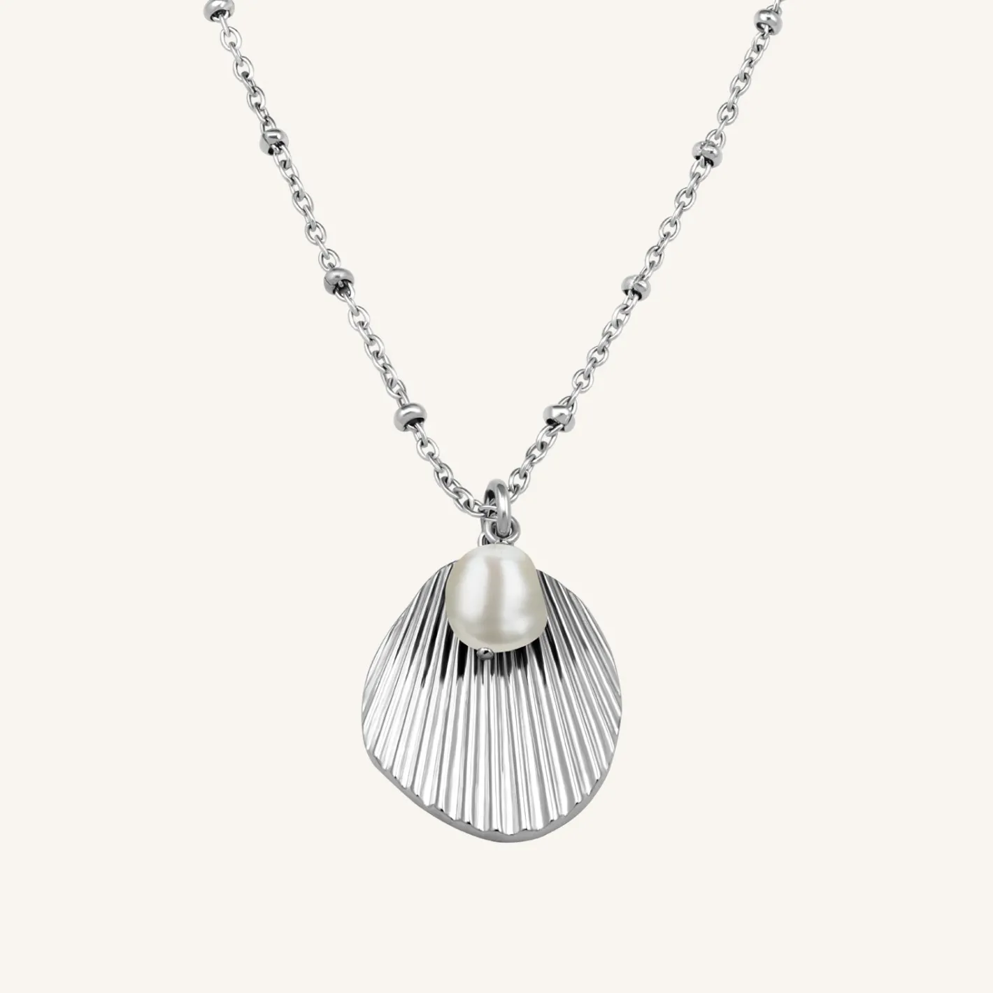 This hand-made design is crafted with pearl and shell pendants. It has an extendable chain to be adjusted for the perfec…